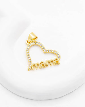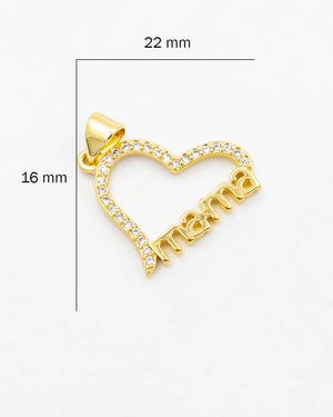 Dije corazón mamá con circones, tiene baño de rodio e incluye 1 unidad.