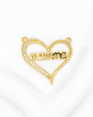 Dije corazón corazón mamá doble argolla, tiene baño de rodio e incluye 1 unidad