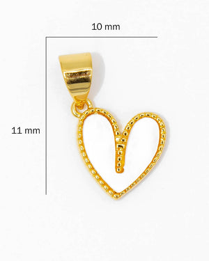 Dije corazón nácar, tiene baño de rodio, incluye 1 unidad.