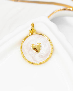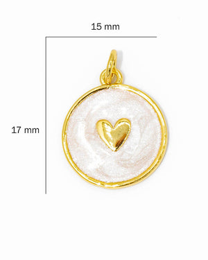 Dije corazón nácar, tiene baño de rodio, incluye 1 unidad.