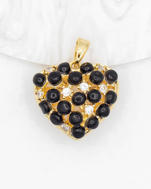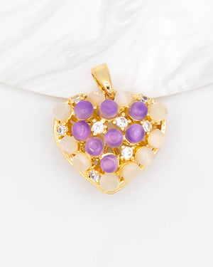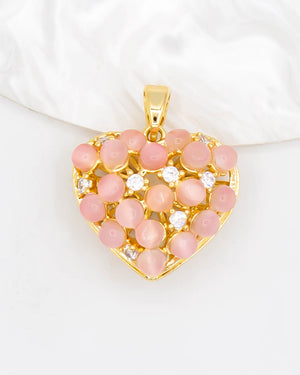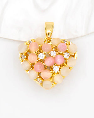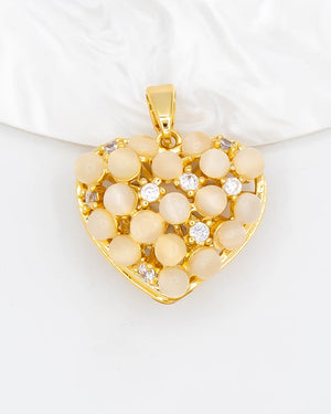 Dije de corazón con perlas de ojo de gato, tiene baño de rodio e incluye 1 unidad.