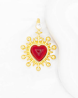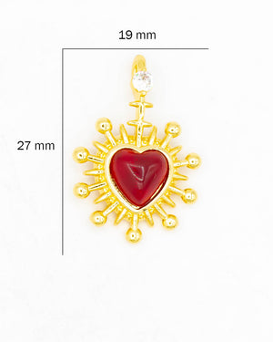 Dije corazón rojo de puntas redondas con circón, tiene baño de rodio e incluye 1 unidad