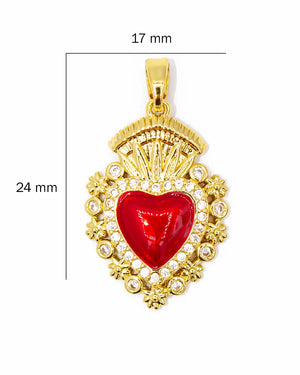 Dije corazón rojo, tiene baño de rodio, incluye 1 unidad.