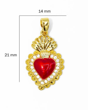 Dije corazón rojo, tiene baño de rodio, incluye 1 unidad.