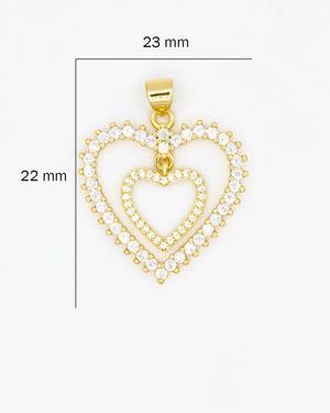 Dije corazón silueta doble, tiene baño de rodio e incluye 1 unidad