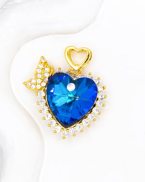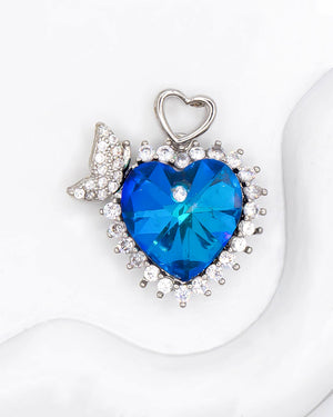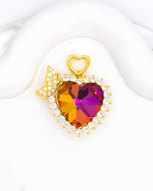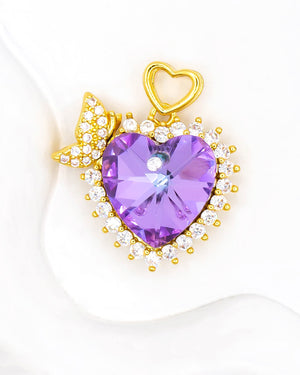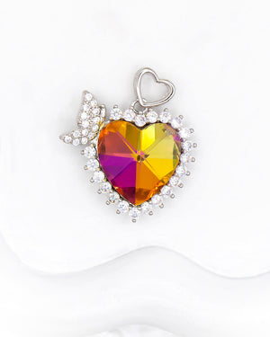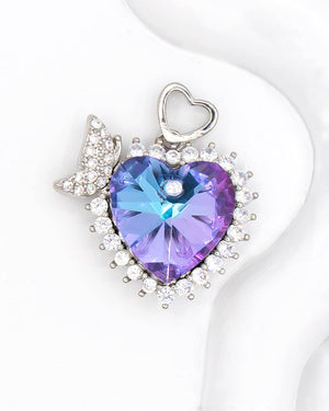 Dije de corazón swarovski con mariposa, tiene baño de rodio e incluye 1 unidad.