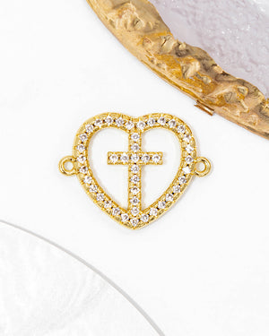 Dije de corazón con una cruz en medio, tiene baño de rodio, incluye 1 unidad.