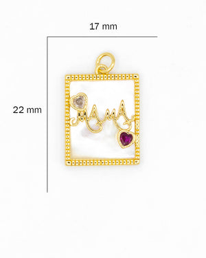 Dije mamá cuadrado con dos corazones, tiene baño de rodio e incluye 1 unidad