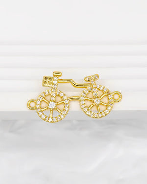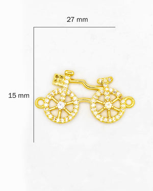 Dije de bicicleta con circones para pulsera, tiene baño de rodio e incluye 1 unidad.