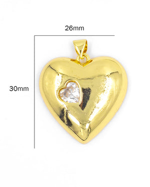 Dije de corazón liso con circón blanco, tiene baño de rodio e incluye 1 unidad.