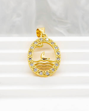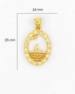 Dije de mar con barco y sol, tiene baño de rodio e incluye 1 unidad