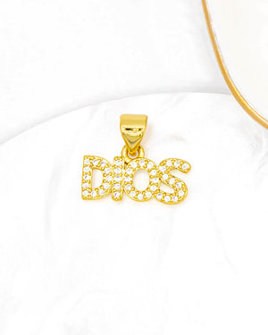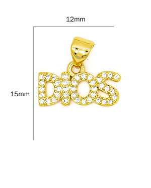 Dije de Dios con circones, tiene baño de rodio e incluye 1 unidad.