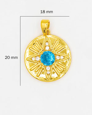 Dije estrella redonda azul, tiene baño de rodio, incluye 1 unidad.