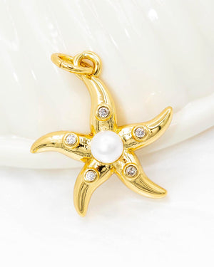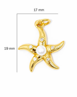 Dije estrella de mar con perla, tiene baño de rodio, incluye 1 unidad.