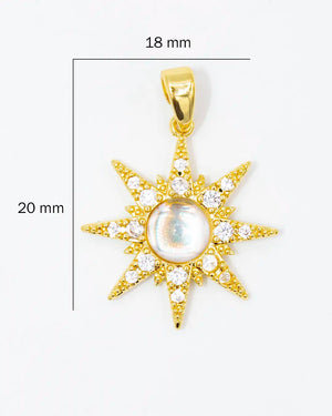 Dije estrella ópalo con circones, tiene baño de rodio, incluye 1 unidad.