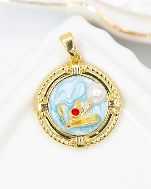 Dije flor azul, tiene baño de rodio, incluye 1 unidad.