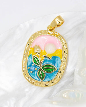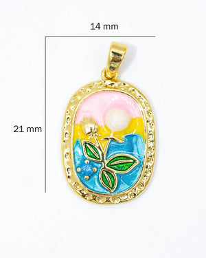 Dije flor colorida, tiene baño de rodio, incluye 1 unidad.