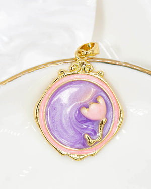 Dije flor morada, tiene baño de rodio, incluye 1 unidad.