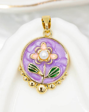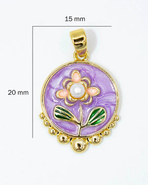 Dije flor morada, tiene baño de rodio, incluye 1 unidad.