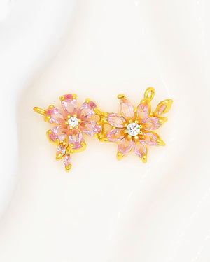 Dije de flores de circones rosados, tiene baño de rodio e incluye 1 unidad
