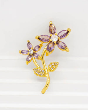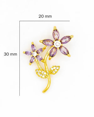 Dije de pasador de flores con circones morados, tiene baño de rodio e incluye 1 unidad