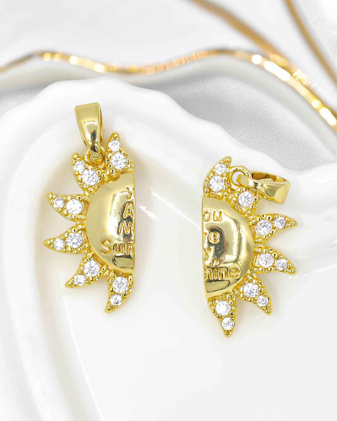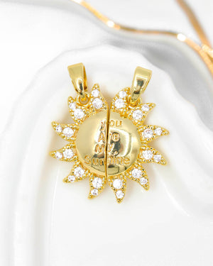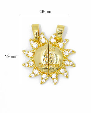 Dije sol con frase e imán para pareja, tiene baño de rodio, incluye 1 unidad.