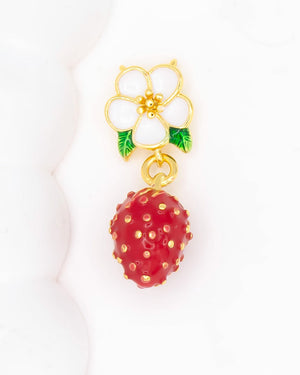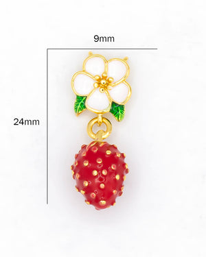 Dije fresa con una flor, tiene baño de rodio e incluye 1 unidad.
