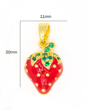 Dije fresa con circones verdes, tiene baño de rodio e incluye 1 unidad.