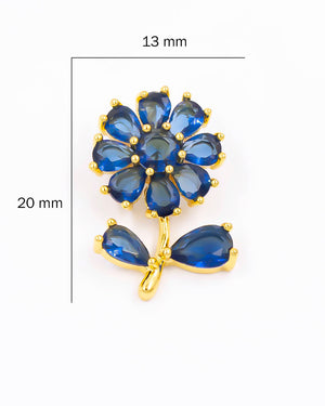 Dije de pasador de girasol con circones azules, tiene baño de rodio e incluye 1 unidad