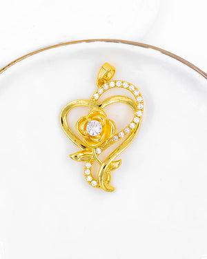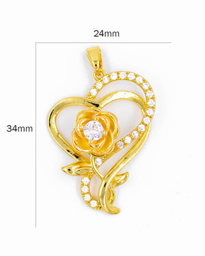 Dije giratorio de corazón con una rosa y circones, tiene baño de rodio e incluye 1 unidad.