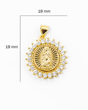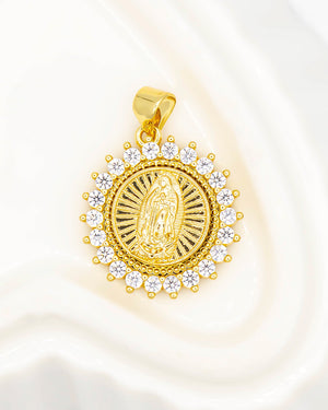 Dije giratorio virgen de Guadalupe, tiene baño de rodio, incluye 1 unidad.