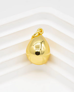 Dije de gota liso, tiene baño de rodio e incluye 1 unidad.
