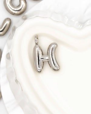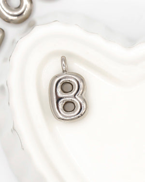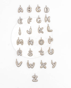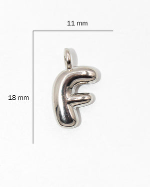 Dije de letra chunky lisa pequeña plateada, tiene baño de rodio e incluye 1 unidad.