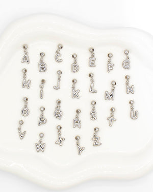 Dije letra mini con aguja, tiene baño de rodio e incluye 1 unidad.