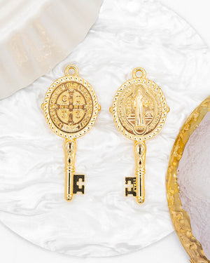 Dije llave de San Benito grande, tiene baño de rodio, incluye 1 unidad.
