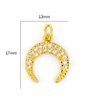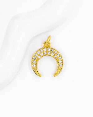 Dije de luna con circones, tiene baño de rodio e incluye 1 unidad.