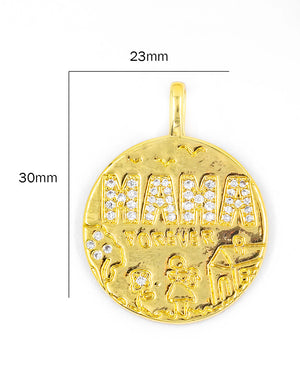 Dije mamá con circones, tiene baño de rodio e incluye 1 unidad.