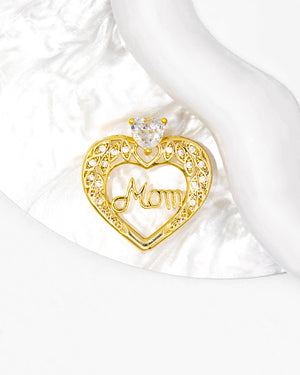 Dije de corazón Mom con circones, tiene baño de rodio e incluye 1 unidad.