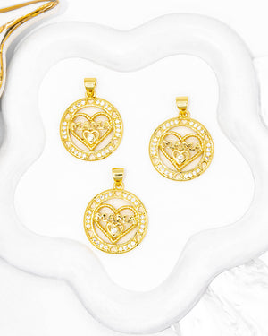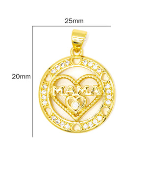 Dije de mamá en corazón con circones, tiene baño de rodio, incluye 1 unidad.