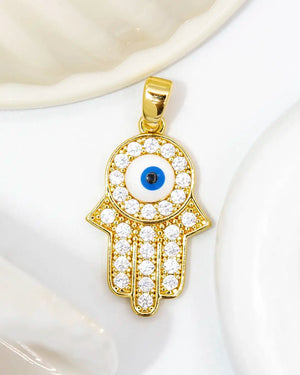 Dije mano ojo turco, tiene baño de rodio, incluye 1 unidad.