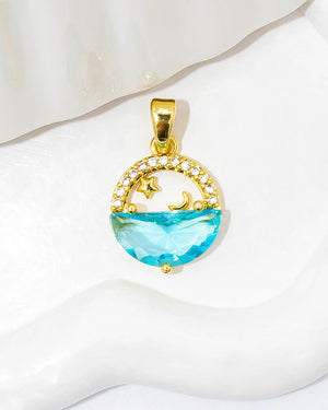 Dije mar azul con luna y estrella, tiene baño de rodio, incluye 1 unidad.