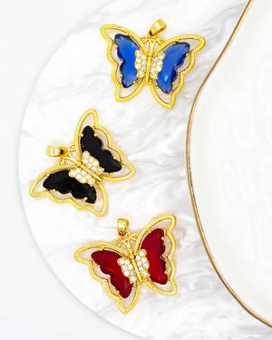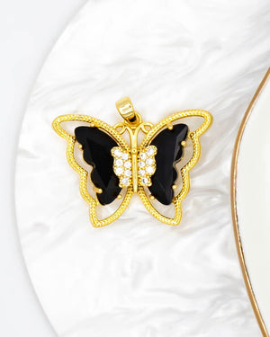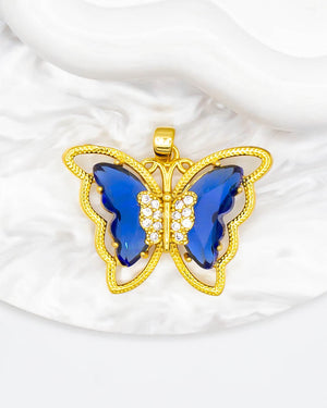 Dije de mariposa con circones, tiene baño de rodio e incluye 1 unidad.