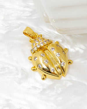 Dije mariquita dorado, tiene baño de rodio, incluye 1 unidad.