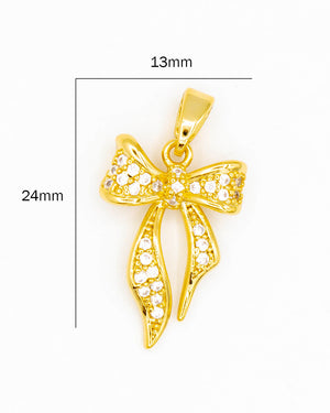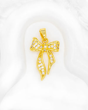 Dije de moño con circones, tiene baño de rodio e incluye 1 unidad.