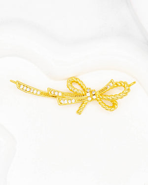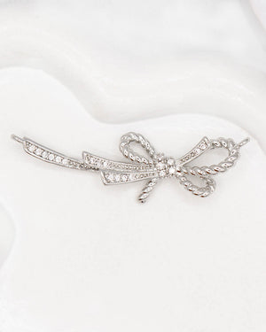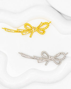 Dije de moño con circones, tiene baño de rodio e incluye 1 unidad.