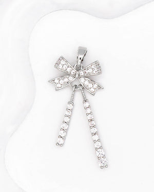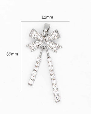 Dije de moño articulado con circones, tiene baño de rodio e incluye 1 unidad.