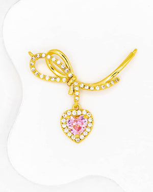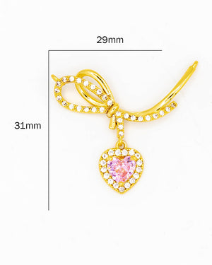 Dije de moño con corazón, tiene baño de rodio e incluye 1 unidad.