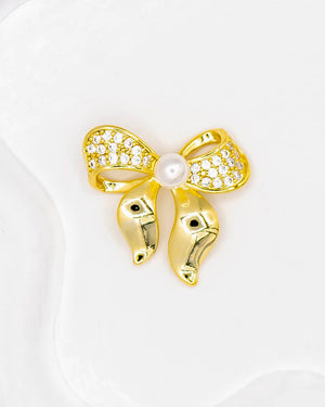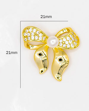 Dije de moño con perla, tiene baño de rodio e incluye 1 unidad.