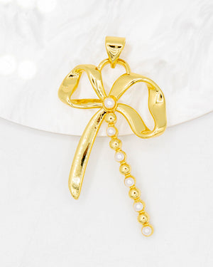 Dije de moño con perlas, tiene baño de rodio e incluye 1 unidad.
