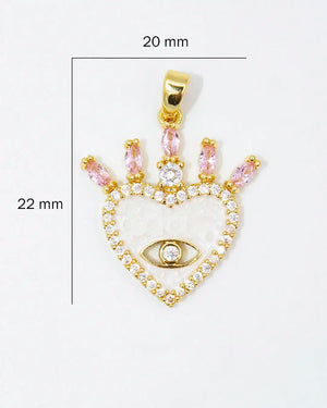 Dije ojo corazón, tiene baño de rodio, incluye 1 unidad.